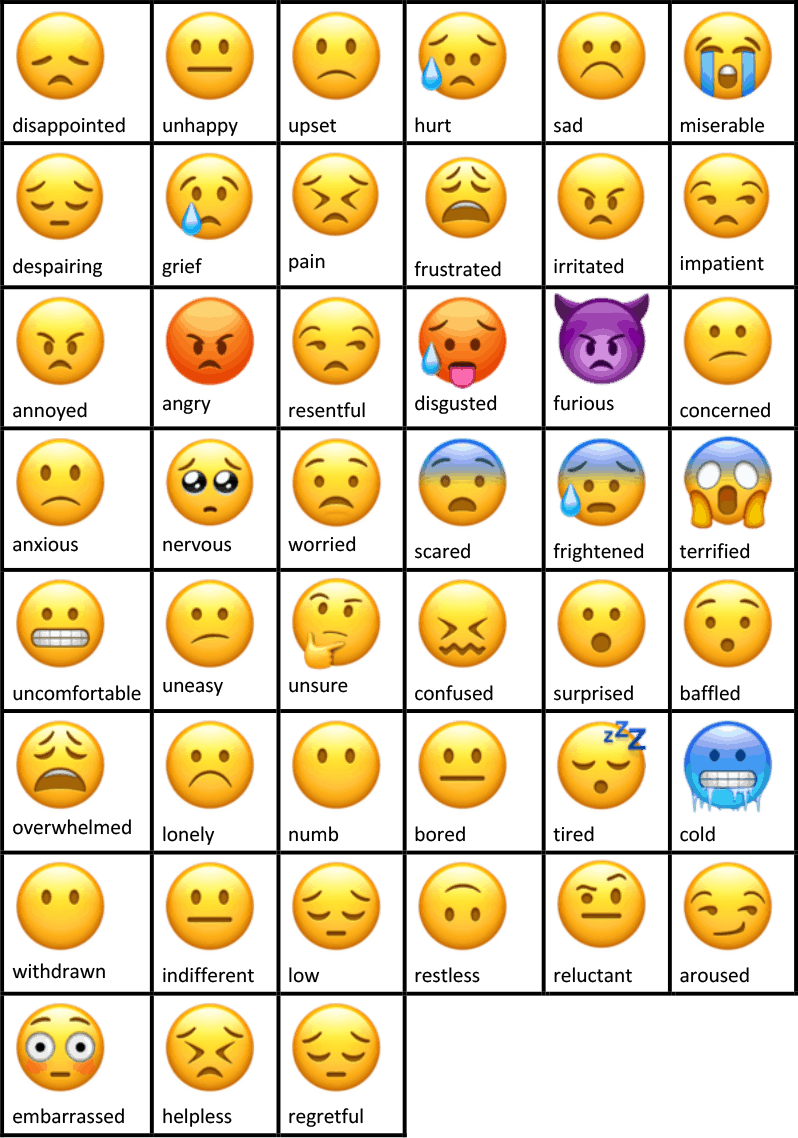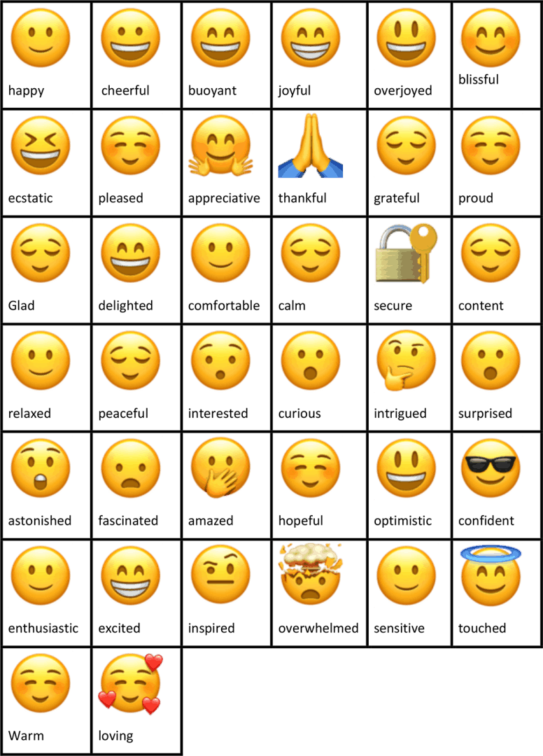- Thoughts: Often we mix our thoughts with our feelings; if you can replace the verb “I feel” by “I think” it means it was a thought and not a feeling.